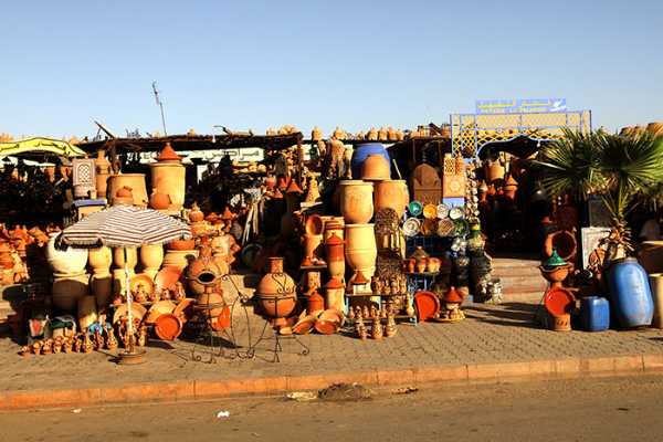 local, artigos em couro e cerâmica. É possível comprar também o gellabiya,